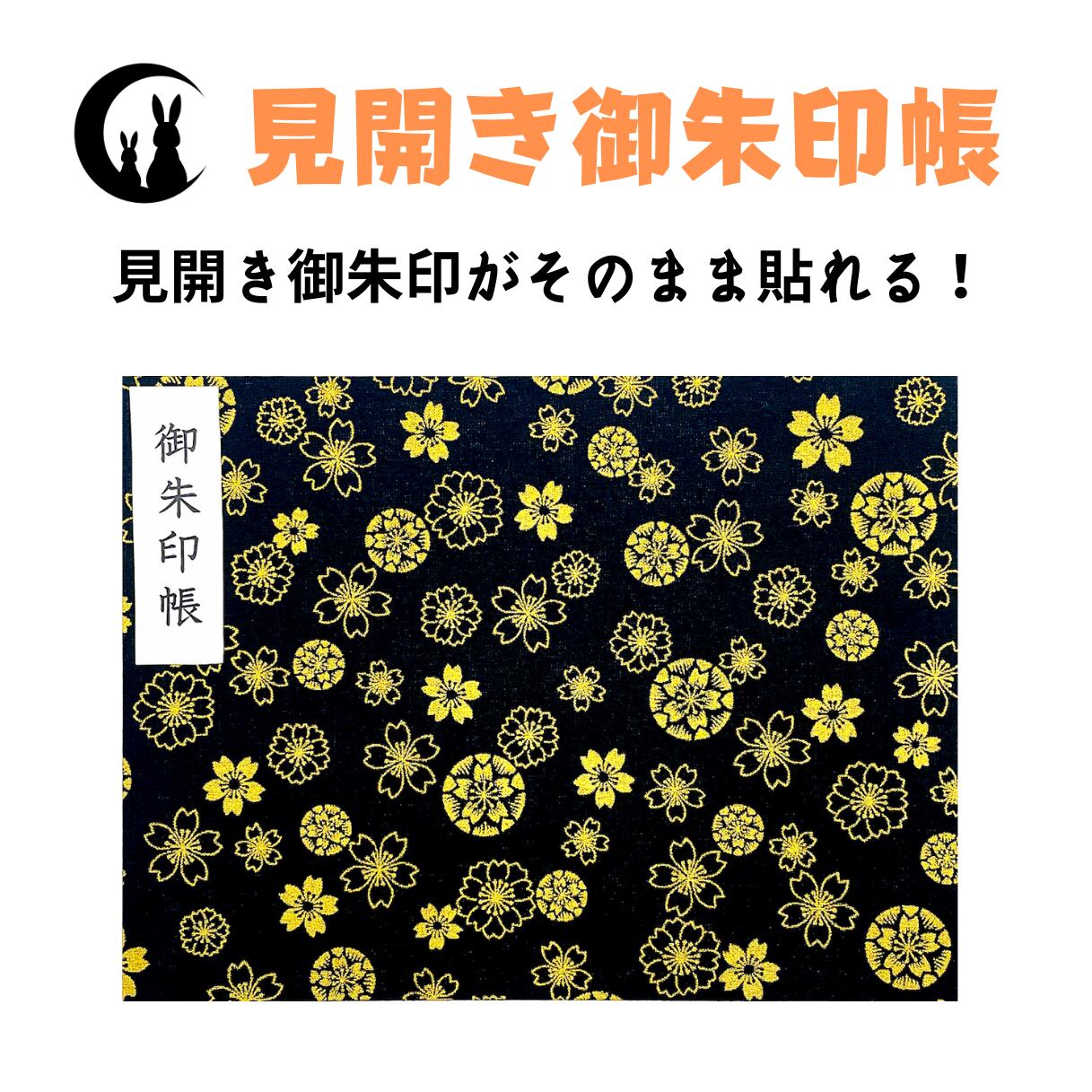 【見開き 御朱印帳】金の桜模様(黒)