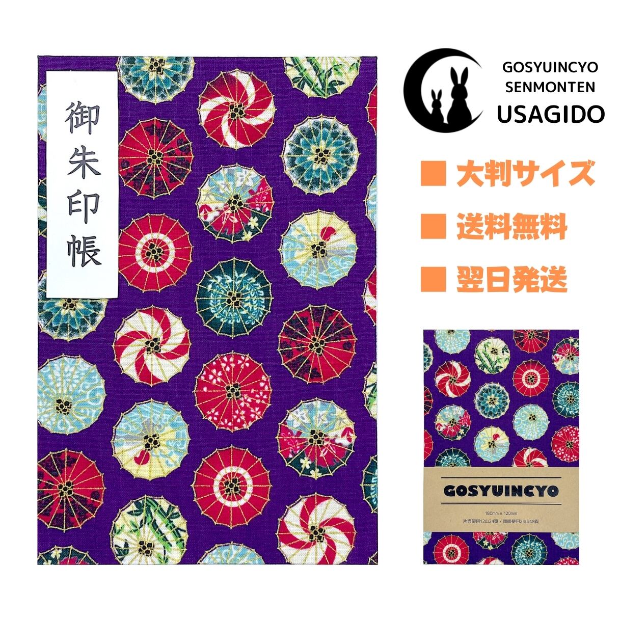 【御朱印帳】和風な番傘(紫)